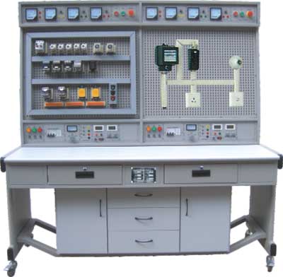 本裝置主要由實訓桌、電源控制箱、實訓元器件模塊、網(wǎng)孔板(專利產(chǎn)品)組成,網(wǎng)孔板表面均布 “ ? ” 字網(wǎng)孔,元器件和走線槽等裝在特制的底座上,底座與網(wǎng)孔板相配套,實訓時不需多人配合費好多時間把元器件用螺絲逐個固定在網(wǎng)孔板上,僅需取出相應的元器件模塊 , 在網(wǎng)孔板上選好位置一插一拉即可緊緊地固定在網(wǎng)孔板上,構思巧妙,克服了一直以來圍繞所有廠家網(wǎng)孔板實訓設備實訓考核時所需的煩鎖的螺絲固定元器件的難題。 元器件的合理安裝、線路的合理布局,全部由學生自行完成,有效培養(yǎng)學生的電工技能和工藝操作。添加元器件能完成大中專院校、職校、技校的《機床電路訓練》、《電工技能訓練》、《維修電工技能訓練》、《電氣控制技術》 等相關電工技能、電工儀表與測量課程實訓,也可作為電工考證的考核設備。